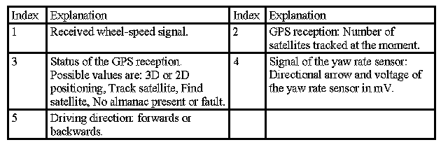 This display on the Control Display can be used during a test drive to check whether the wheel-speed signal, the signal of the yaw rate sensor and the GPS reception are present.