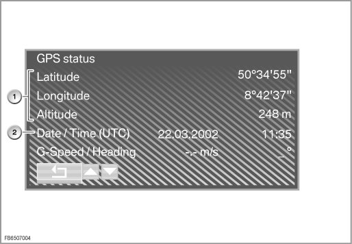 In the other menu items, the internal data of the navigation system are displayed: e.g. software version, coding version, power supply and temperature of the control module.