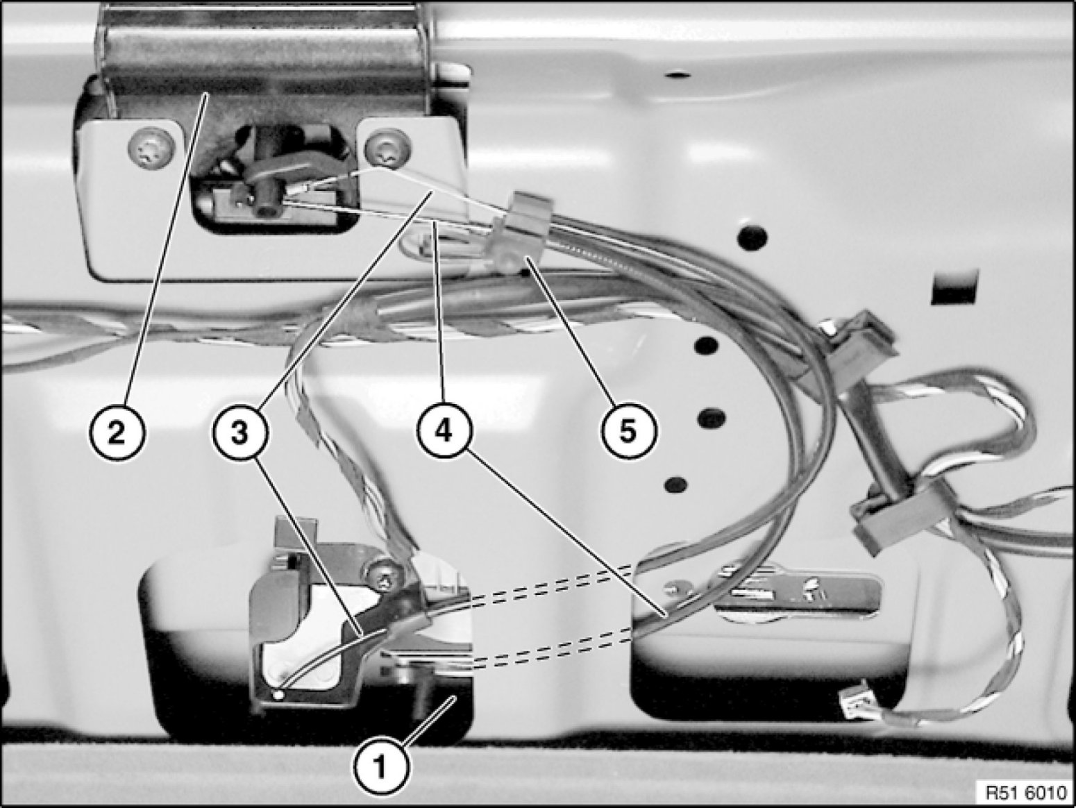 51 24 065 - Removing and installing/replacing Bowden cable for manual rear lid unlocking (up to 03/05)