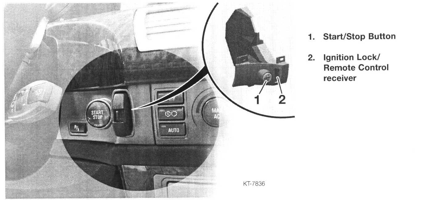 - Illuminate the start/stop button and the ignition lock/remote control receiver;