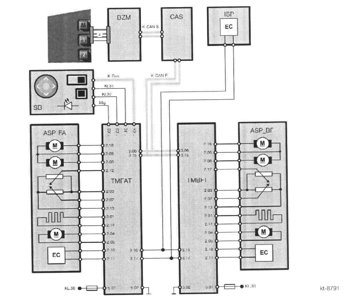 The control signals are transmitted from the inside rear view mirror via the front door modules to the exterior mirrors.