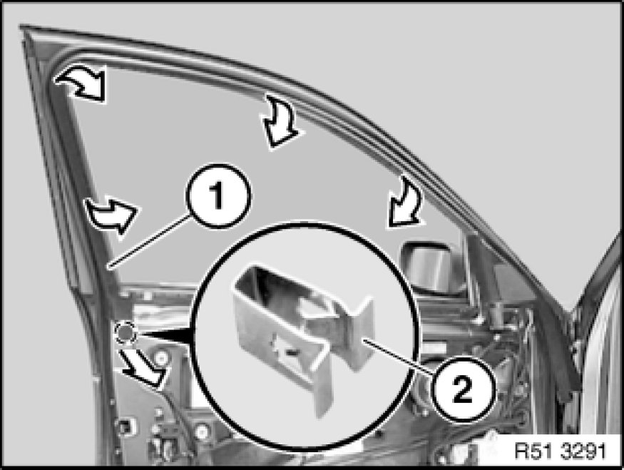 51 32 160 - Removing and installing / replacing housing cover on inner left or right door window frame