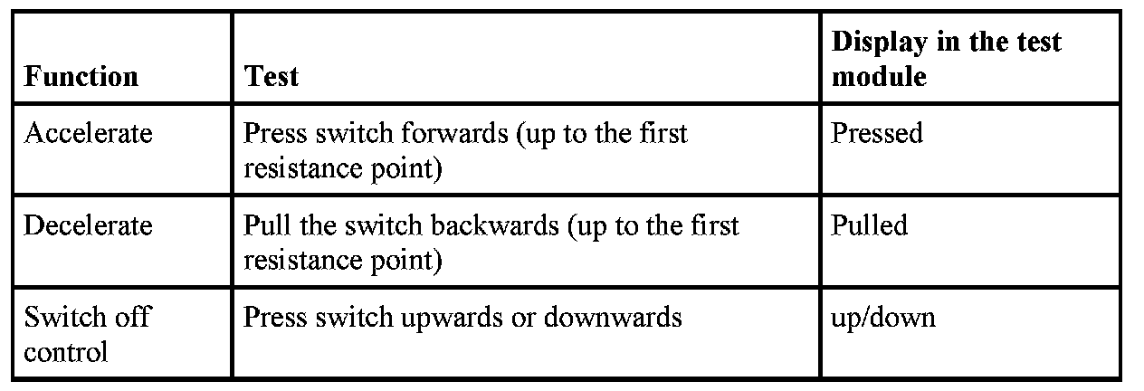 The following functions of the cruise control can be tested: