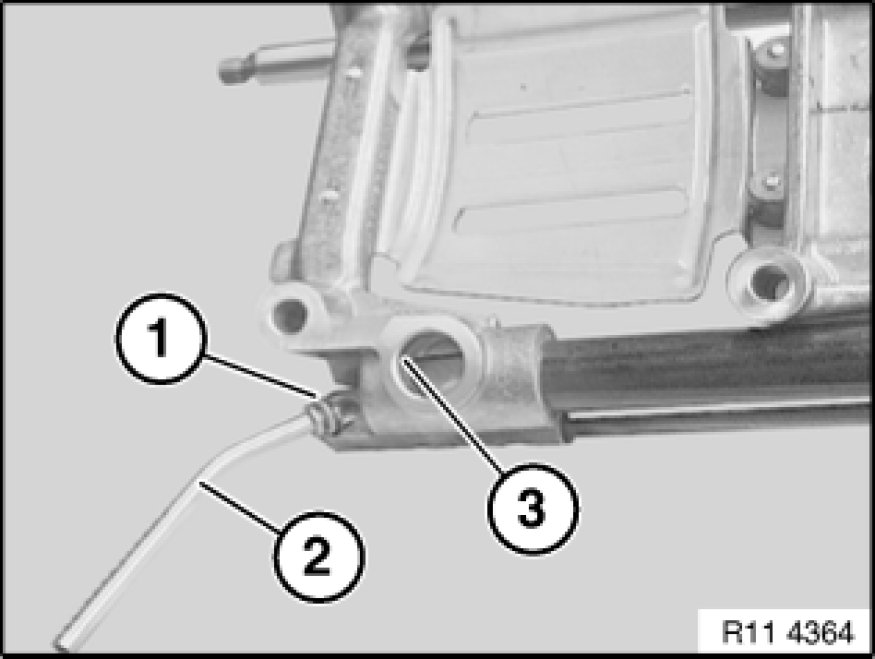 Insert oil line (2) in crankcase.