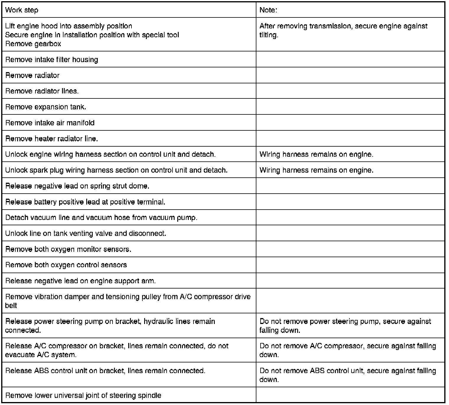 Release engine mounts on left and right from above.