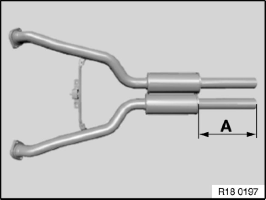 While installed, mark length (A) with aid of replacement muffler on faulty front muffler.