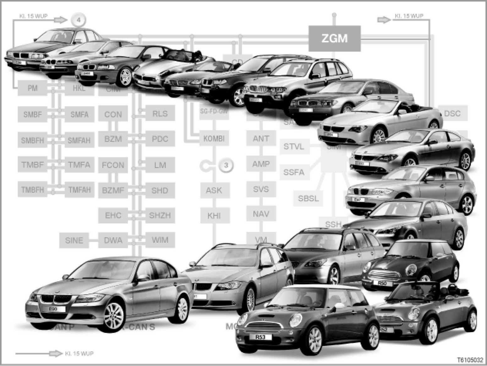 To support the workshops, the predecessor version of the bus structures on the E60 are also described below: