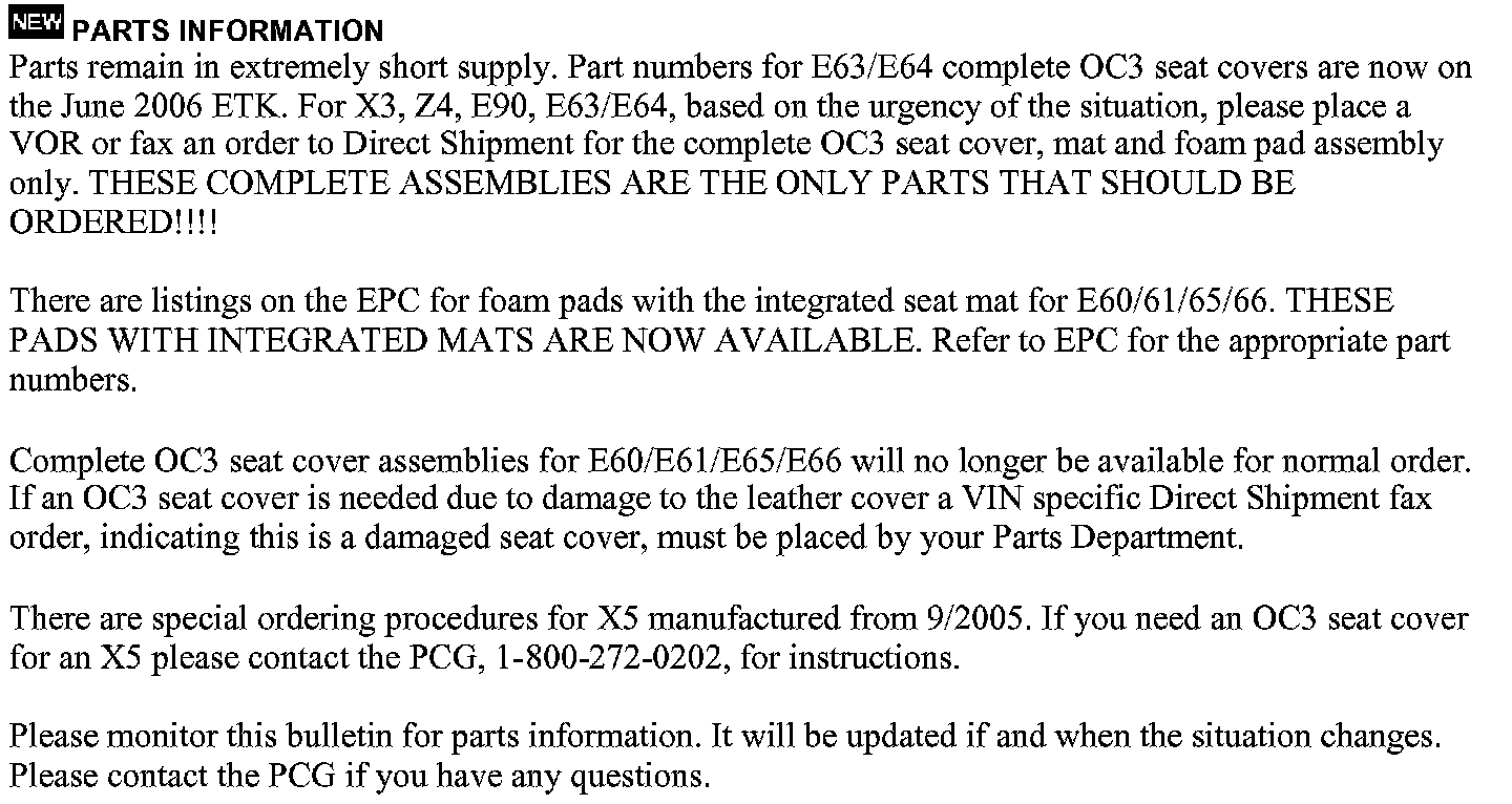 To avoid the possibility of a pre-load condition on the assembled part, be sure to follow the repair instructions. The 0C3 mat will not enable if there is pre-load.