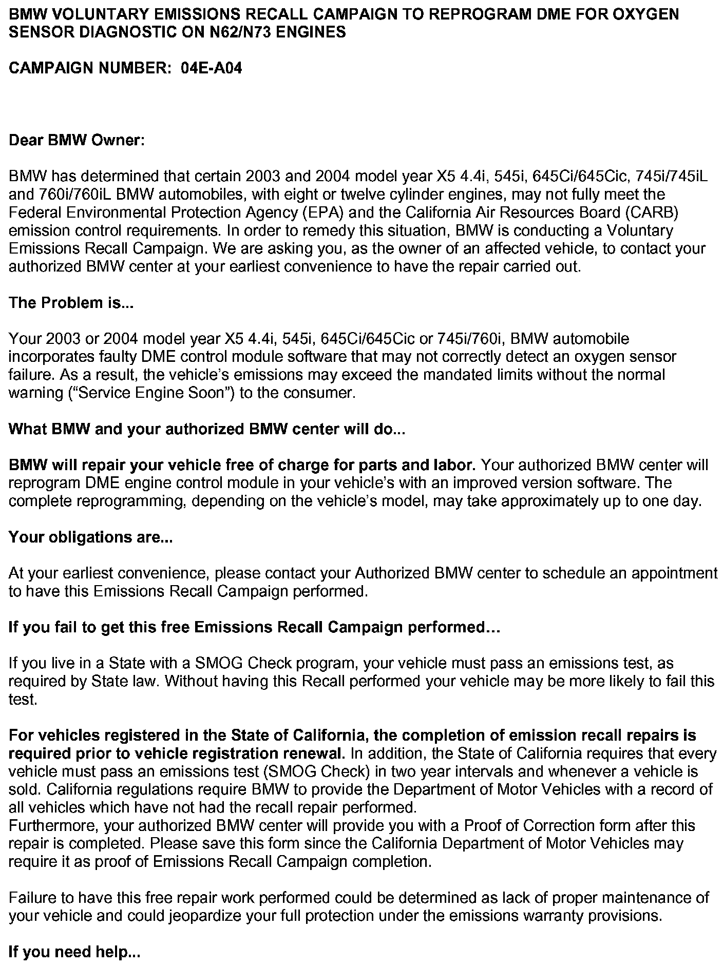 Recall - Reprogramming DME for O2 Sensor Diagnostics