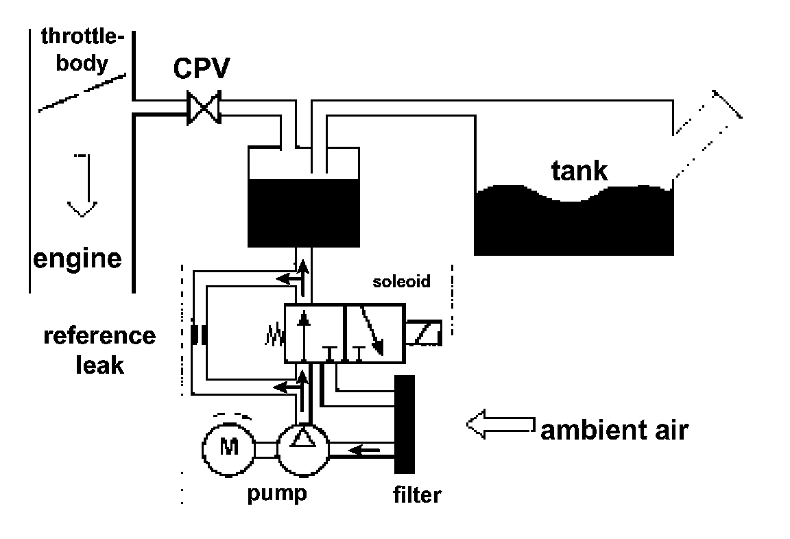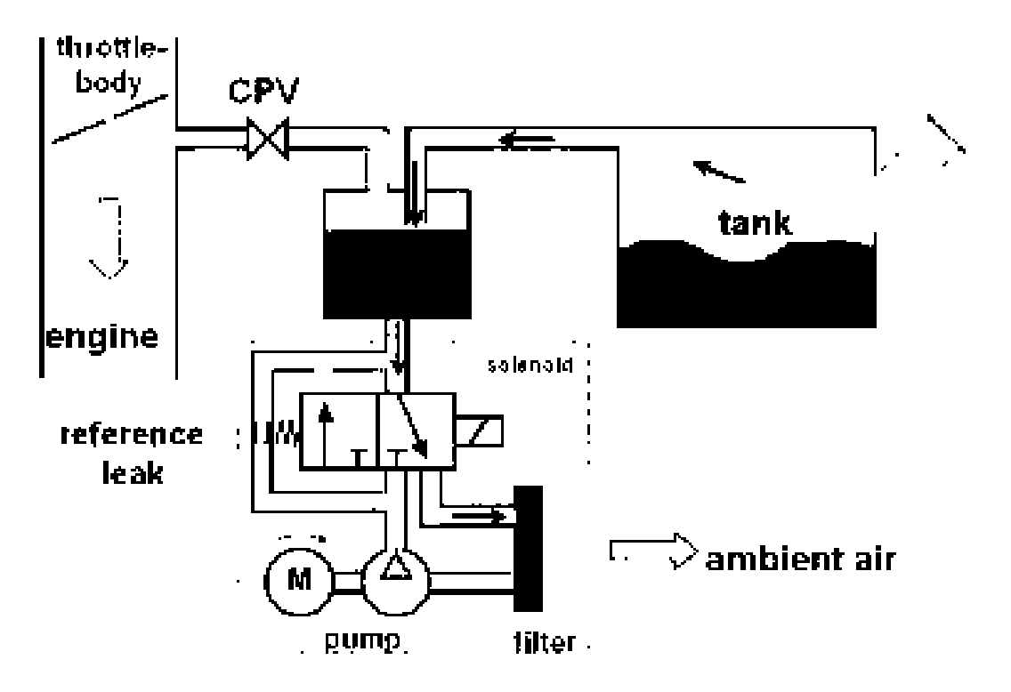 By means of a Diagnostic Module_Tank Leakage (DM_TL), an electrical actuated pump located at the atmospheric connection of the evaporative canister, a pressure test of the evaporative system is performed in the following order: