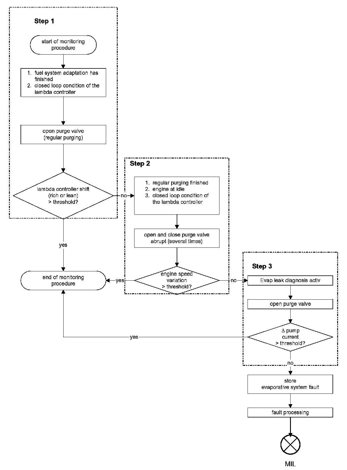In this case the lambda controller does not need to compensate for a deviation. Therefore, after finishing the regular purging, the purge valve is opened and closed abruptly several times.
