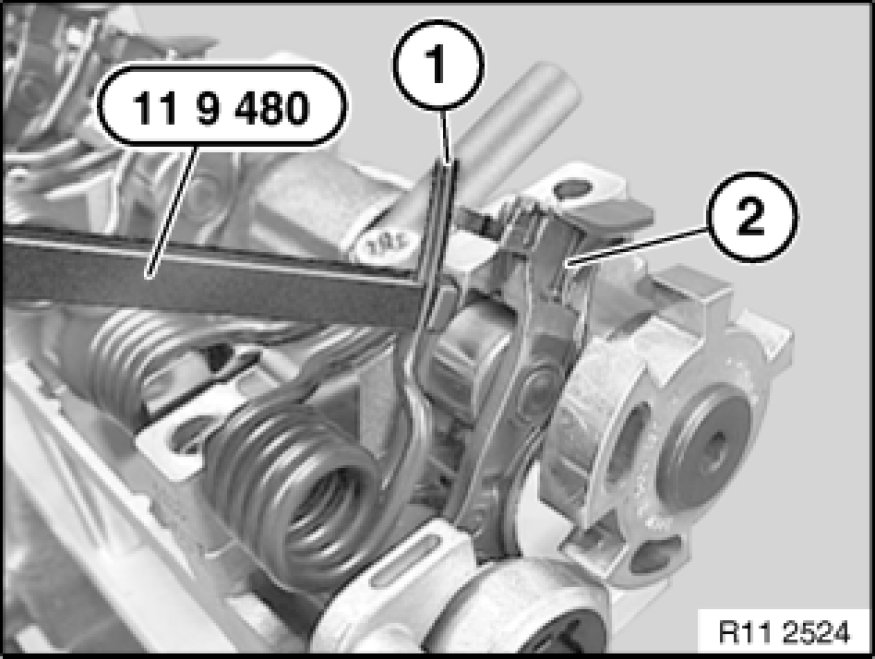 Support end of torsion spring protected with special tool 11 9 490 11 9 490 Holding Sleeve on inlet camshaft.