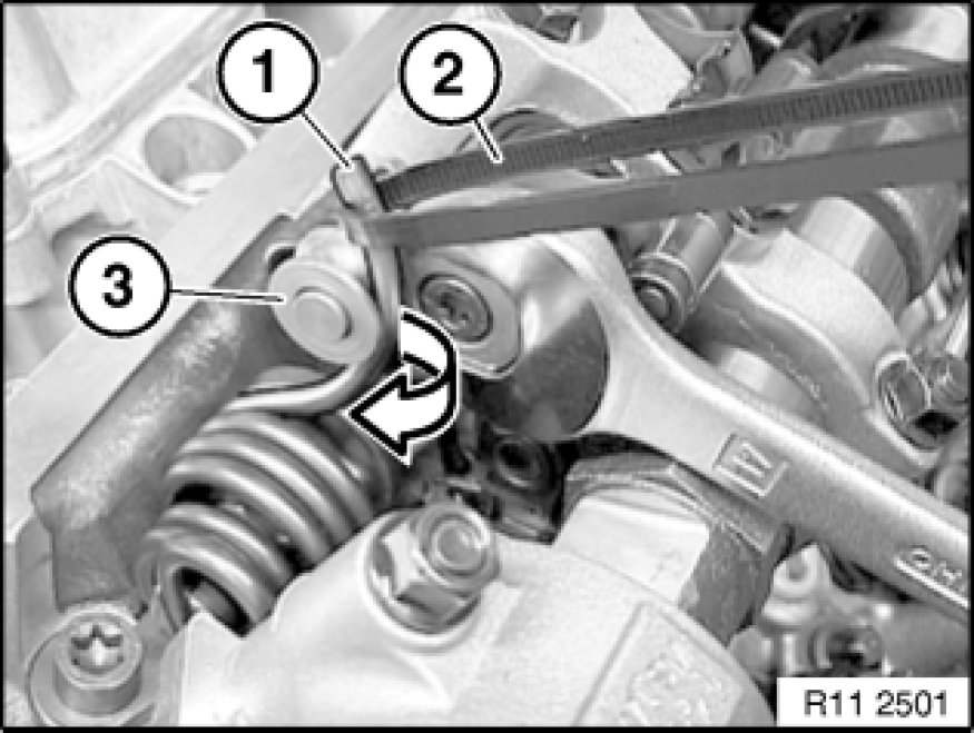 When replacing rocker arms (1) on inlet side: install rocker arms of the same tolerance class in the same position.