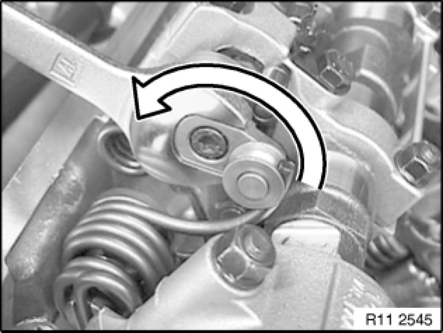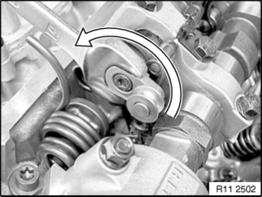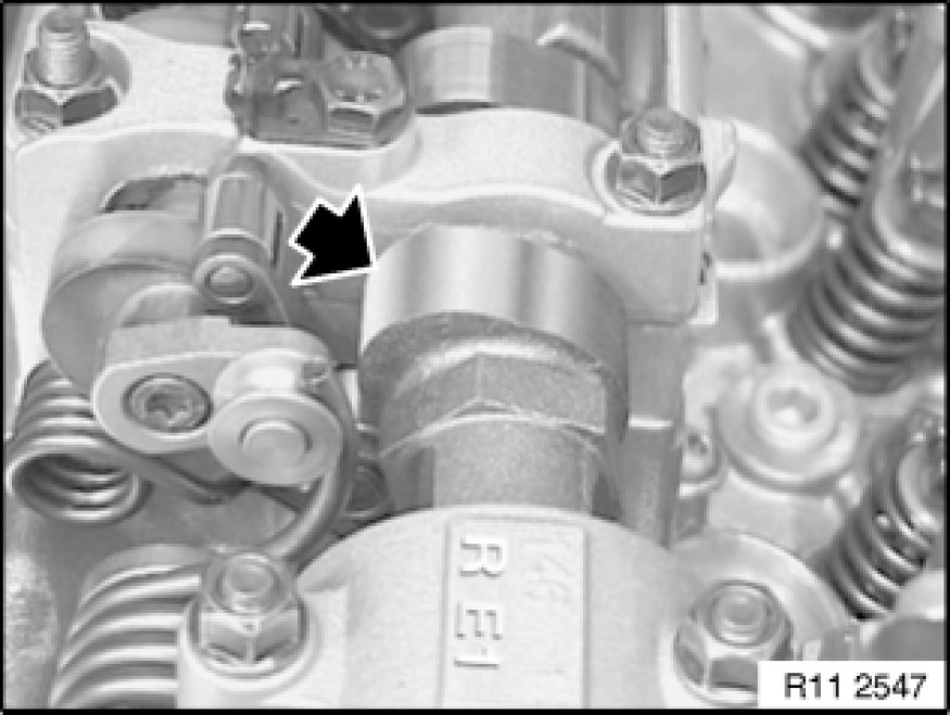 The inlet camshaft must first be rotated so that when the bearing bracket is removed the intermediate levers do not slip out and damage the camshaft.