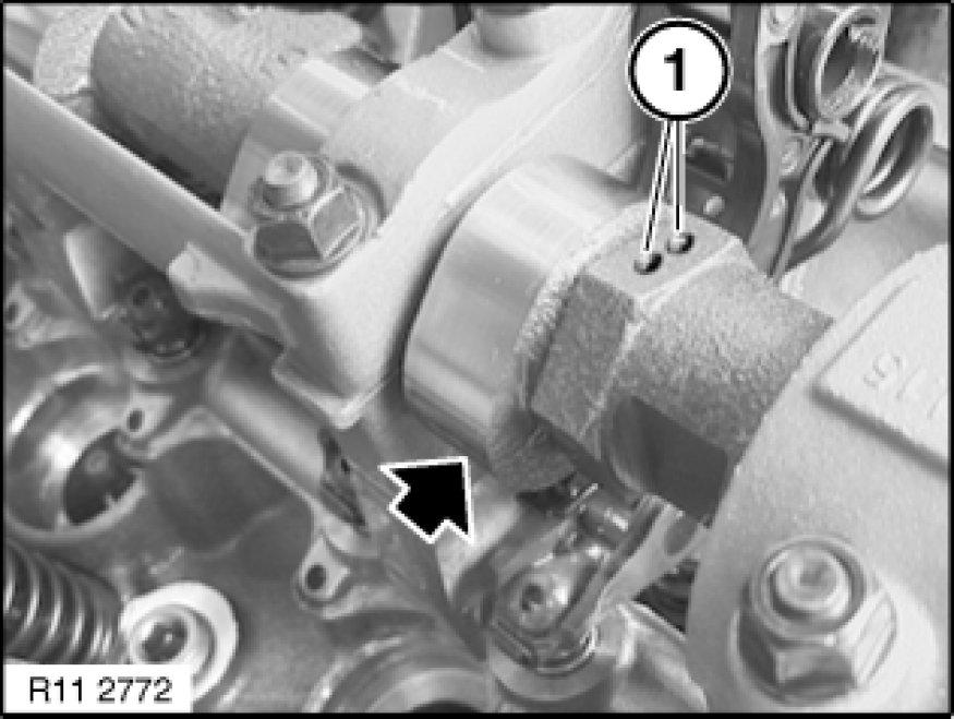 The marking (1) on the hexagon drive of the inlet camshaft faces upwards.