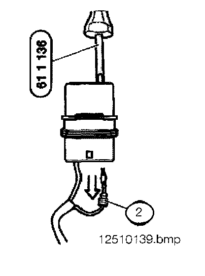 - Unlock contact with special tool 61 1 136 and pull out cable (2) and contact towards rear.