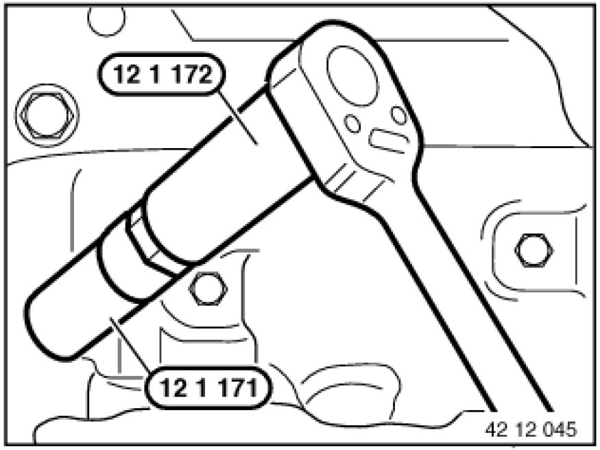Tighten down spark plugs with special tool 12 1 171 and special tool 12 1 172 (torque limiter).