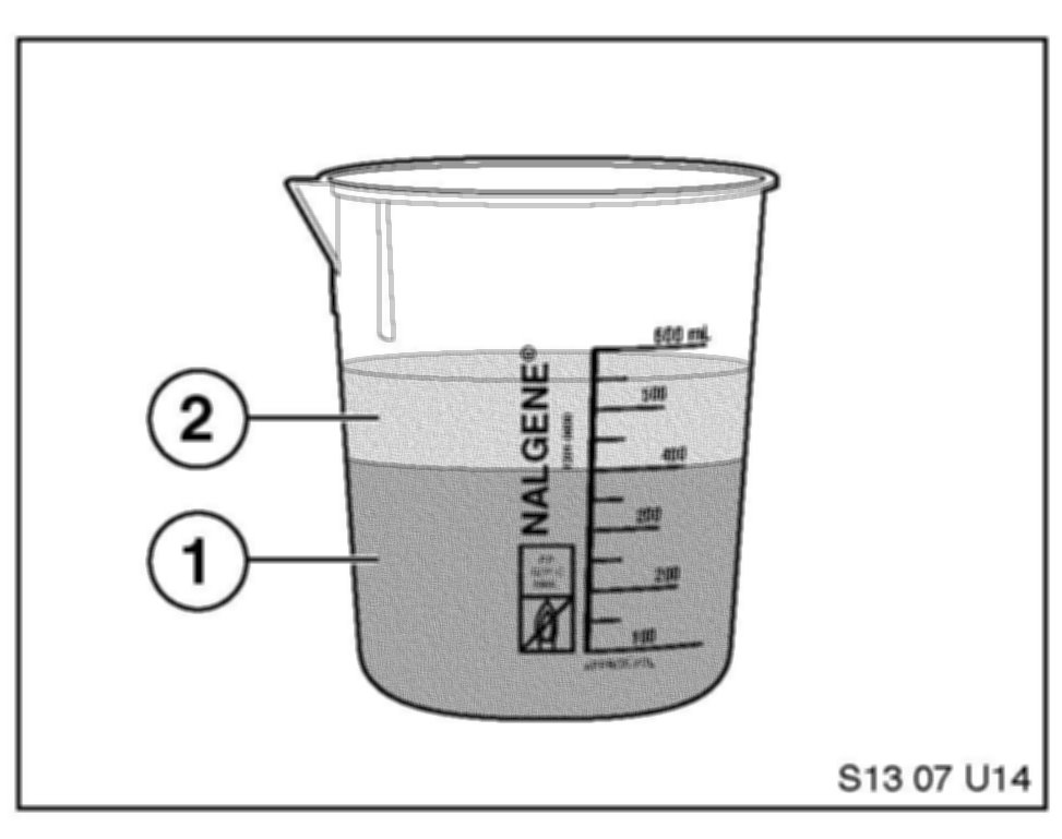 8. Pour 400 ml of fuel (1) and 150 ml of cleaner concentrate (2) into the beaker supplied in the kit.
