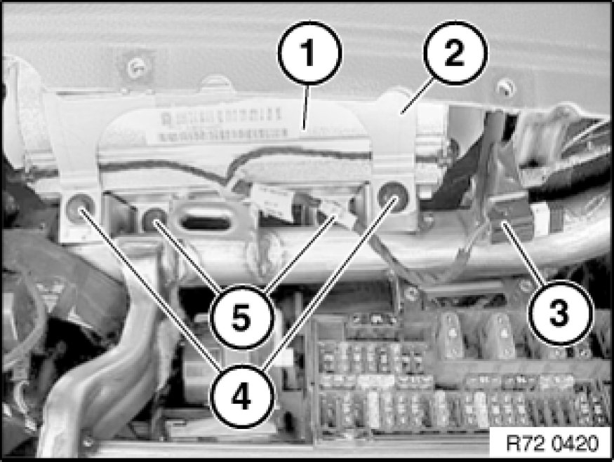 Airbag module (1) could fall out after screws (5) have been released. Grip airbag module (1) firmly.
