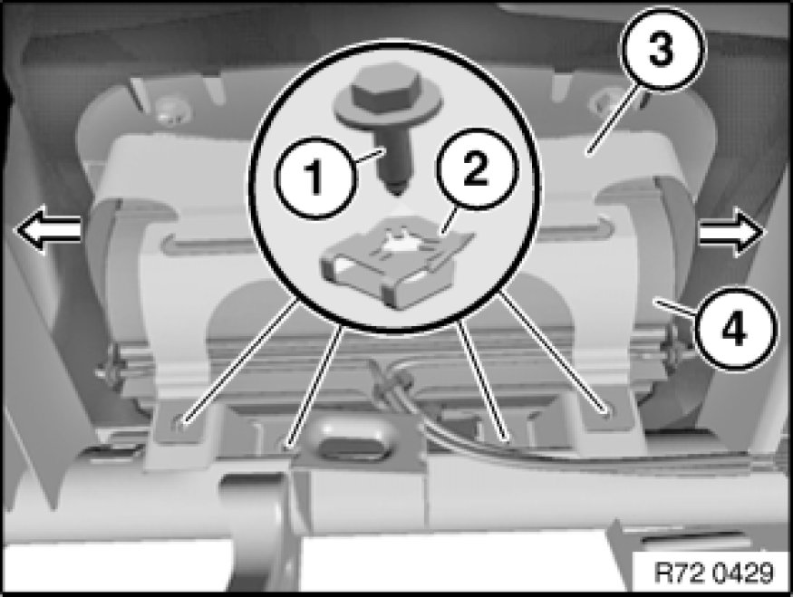 When inserting airbag module (4) in channel (3), make sure channel (3) rests all round airbag module (4). If necessary, pull channel (3) apart at sides.