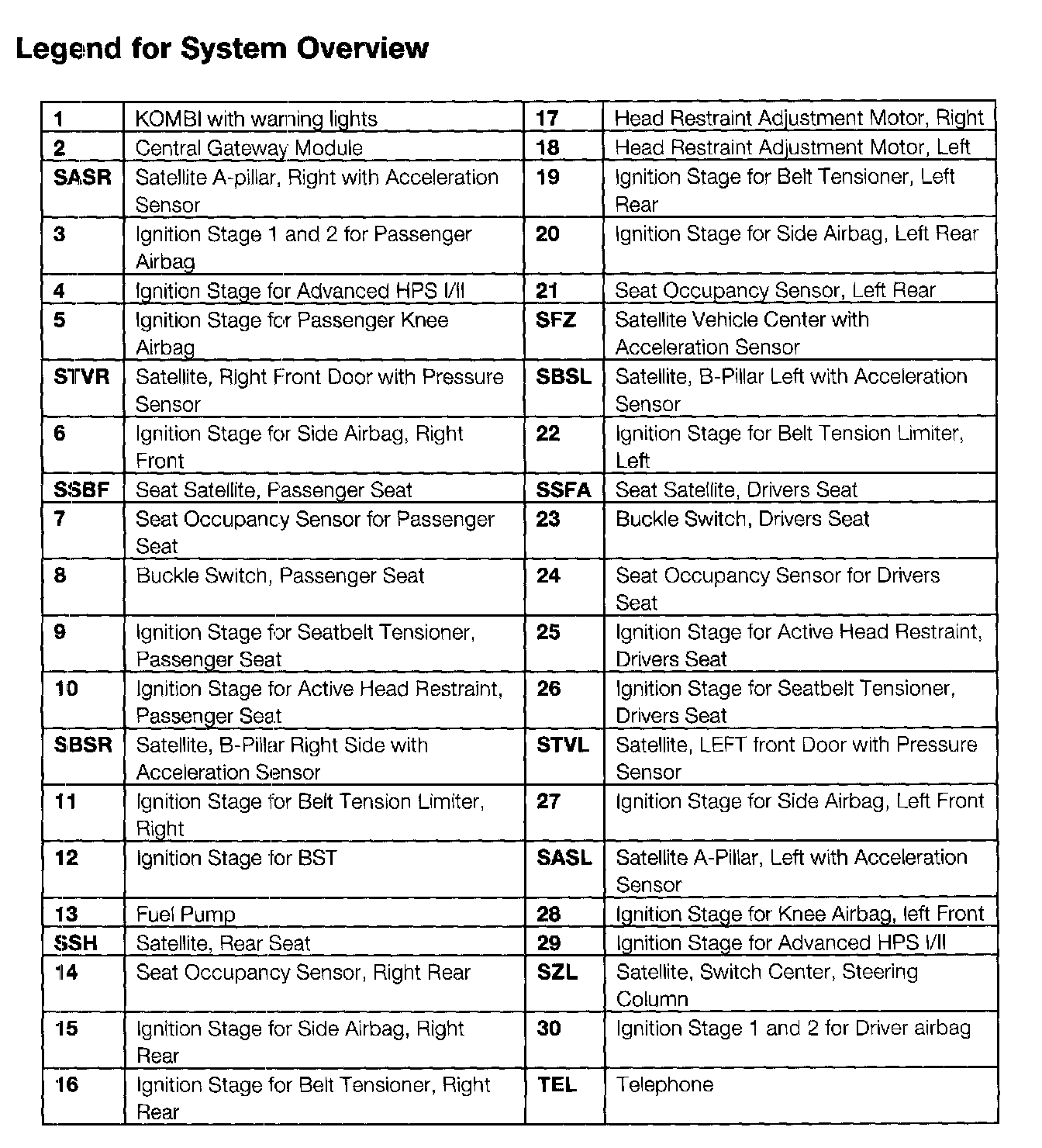 Legend for System Overview