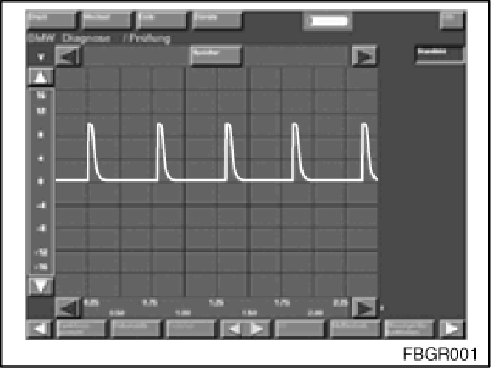 The belt buckle switch is supplied with clocked voltage by the satellite. The following shows the voltage curve that is measured at the airbag control unit when the voltage curve is OK. For the voltage measurement, the adapter lead must not be connected to the seatbelt buckle!