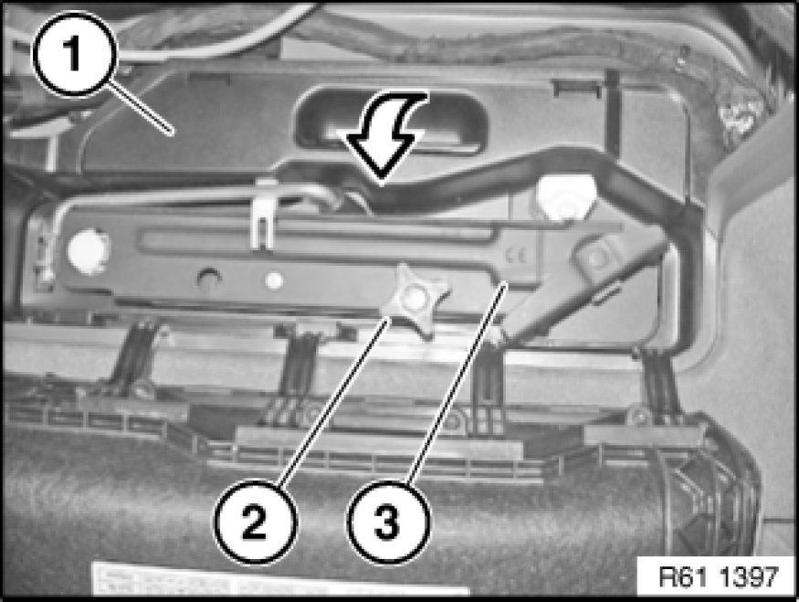 - Remove flap in luggage compartment panel Service and Repair on right