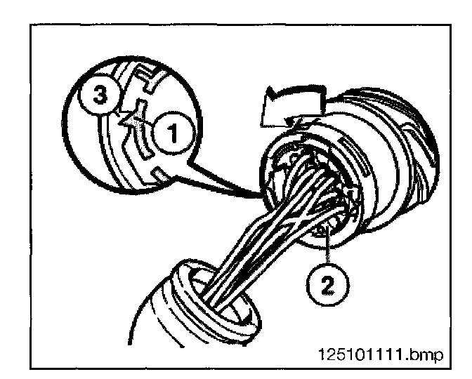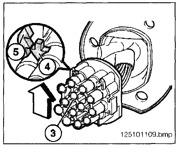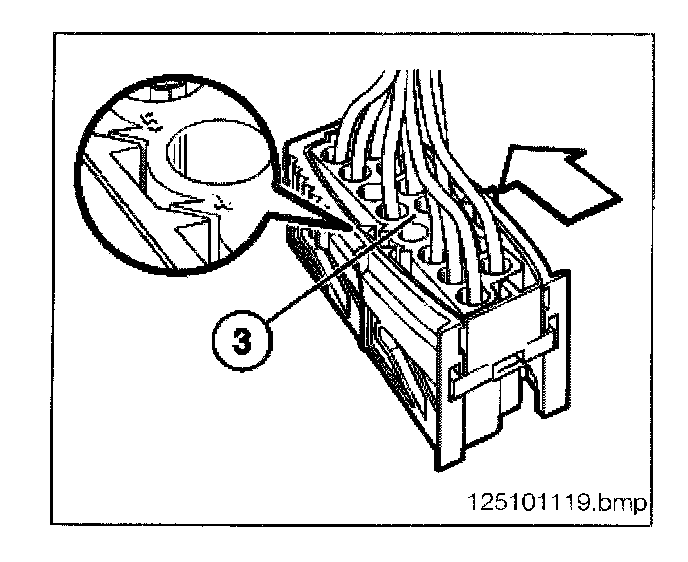 - Using special tool 61 1 132 press the spring latch down and pull the connector (3) from the housing.