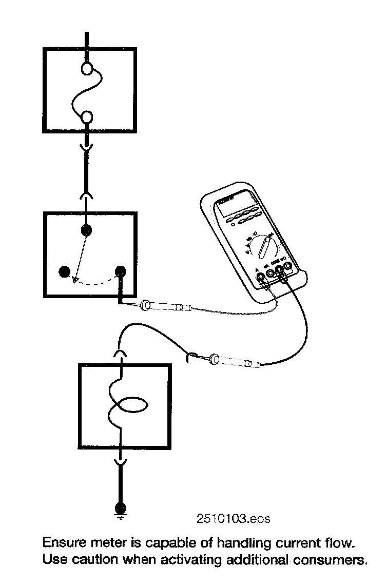 Refer to ETM for convenient location to apply meter (e.g. across fuse terminals).