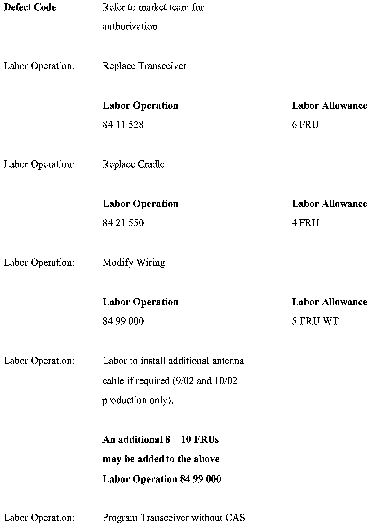 ^ Warranty claims will not be paid without the old and new ESN information. You will be asked for the old and new TCU "ESN" when submitting a claim in DCS net.