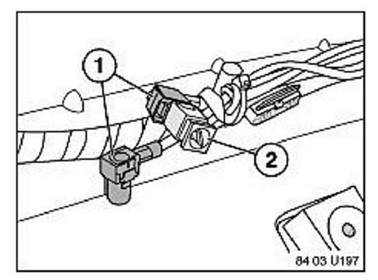 5. Connect both antenna cables (1) together and resecure the cables to the harness. If this connection is not made, the mobile phone calls will fail to make a connection.