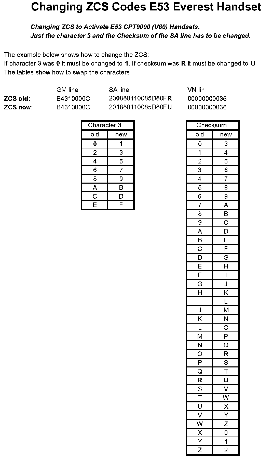 7. 2005 MY vehicles have Bluetooth activated from the factory. In order to retrofit a CPT9000 (V60) telephone and deactivate Bluetooth the ZCS code must be changed according to the chart for 2005 Model Year shown.