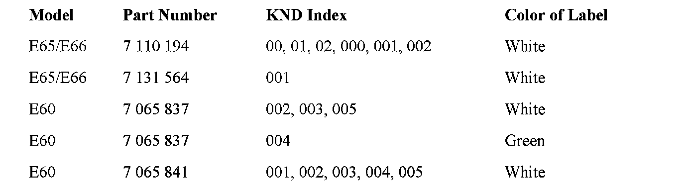 Proceed with the repair only if the numbers and color combinations on the label match the data in the table shown. No repair is necessary if this information does not match the data in the table shown. Reassemble the vehicle.