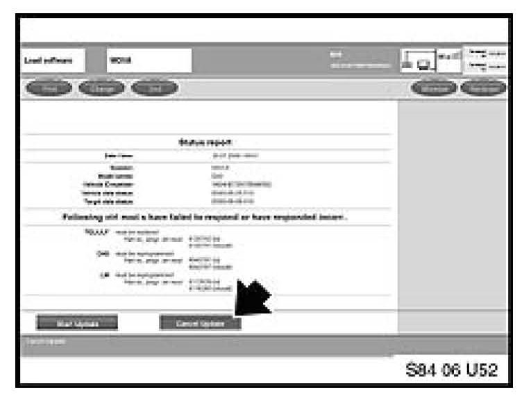 4. At the Status Report screen, select "Cancel Update".