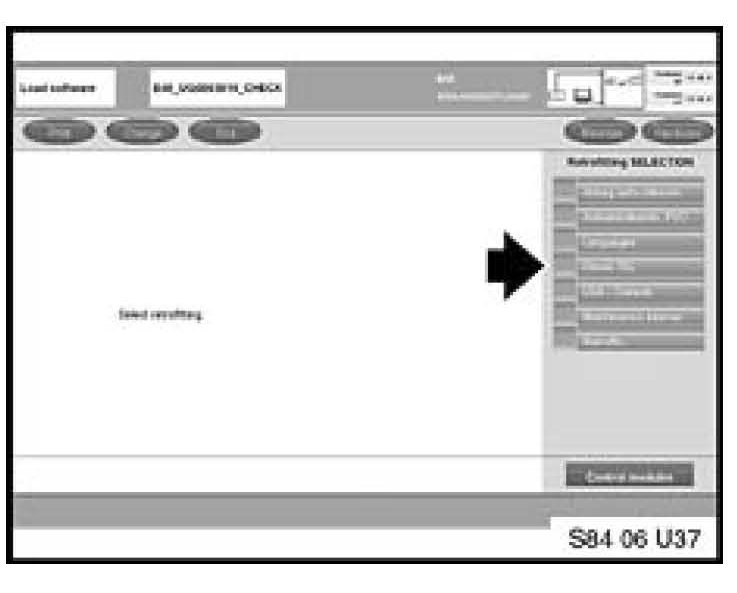 3. Using Progman V24.01.00 or higher, follow the path to the "Retrofits" menu selection. For information on retrofits, refer to the Retrofit section of SI B09 05 01 (Coding, Individualization and Programming).