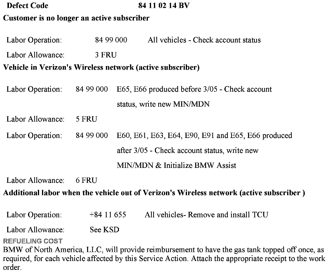 5. The BMW Assist services initialization procedure must be completed per SI B84 15 03 for all vehicles, except E65 and E66 produced before 3/05.