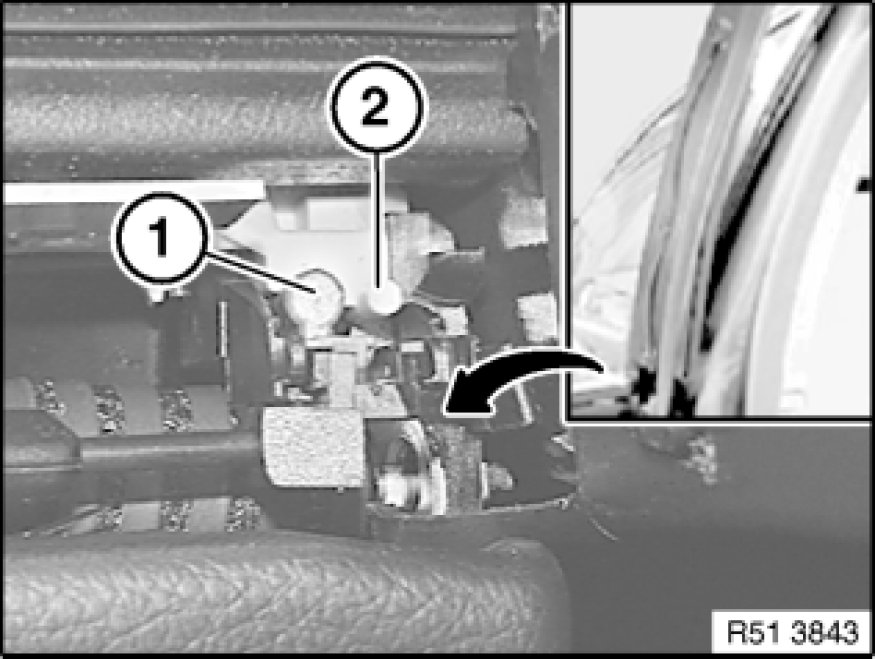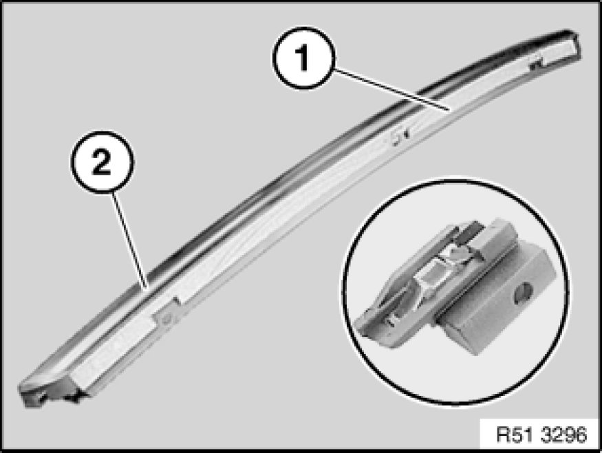 Insert guide rail correctly in brush cable (1) and guide (2).