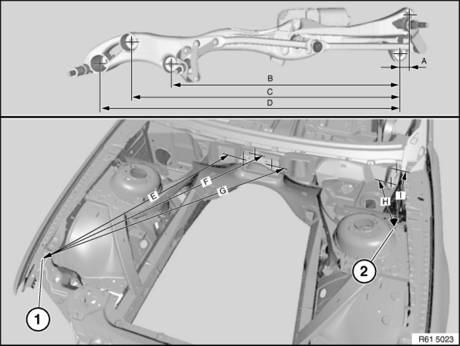You should be able to install all screws without having to exert effort or twisting the wiper bracket. If the tolerance compensation in the sleeves is insufficient or the wiper bracket does not rest flat by its own weight alone on all the mounting points, the wiper bracket and the body must be immediately aligned (refer to next work step).