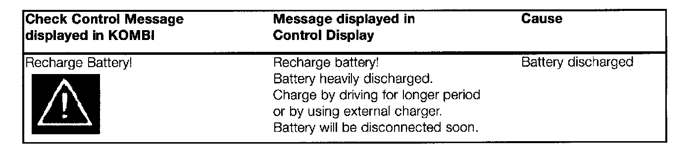 The charge level of the battery is calculated. If it is still below the minimum level for starting the car, the following Check Control message appears: