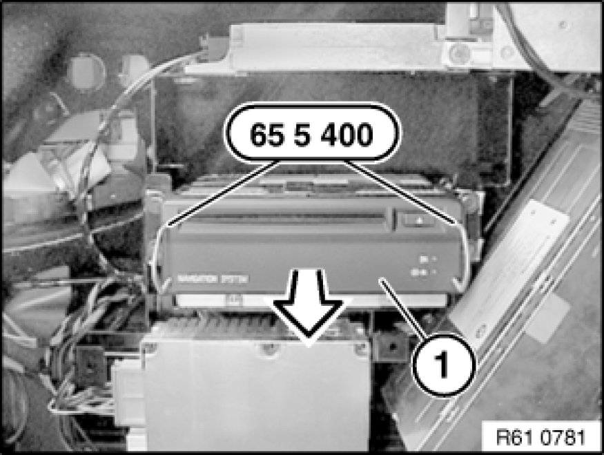 65 90 511 - Removing and installing (replacing) navigation computer with CD drive