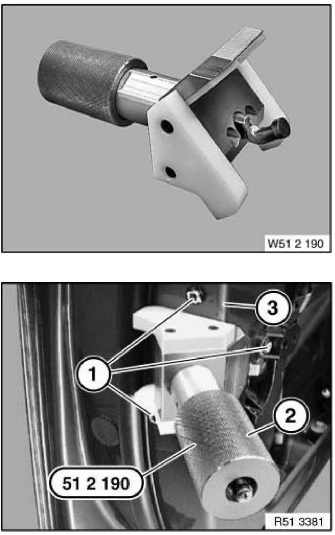 Must be used to pretension the door lock to the correct position for installation. Failure to use this tool may result in door leaks caused by an out of alignment door lock seal. Refer to repair manual section 51 21 090.