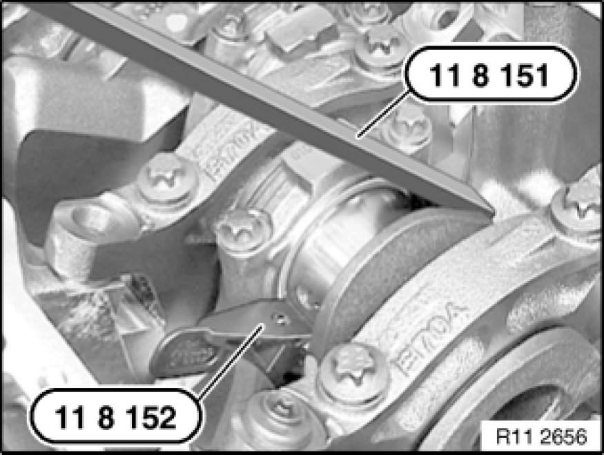 Fit special tools 11 8 151 11 8 150 Insertion Tool and 11 8 152 11 8 150 Insertion Tool.