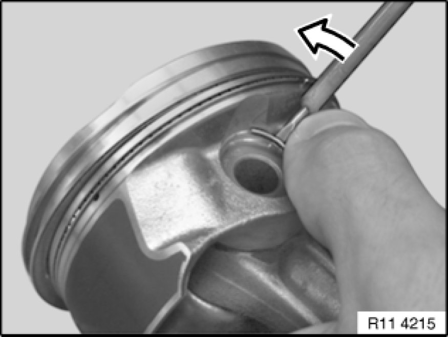 The piston pin must be able to be pressed through the liner by hand with little force and must not display any significant play.