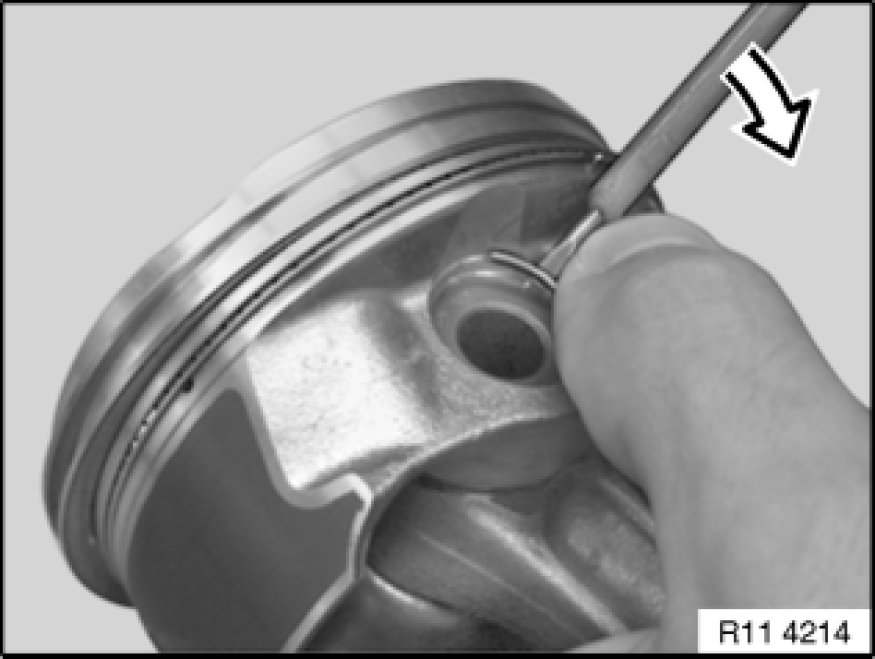 Press together piston rings using special tool 11 7 280 11 7 280 Piston Ring Pliers.