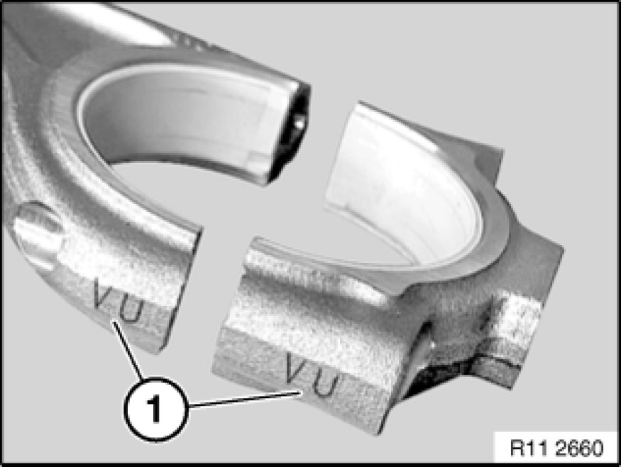 Conrods and conrod bearing caps are denoted with the same pairing letters (1), do not mix them up.