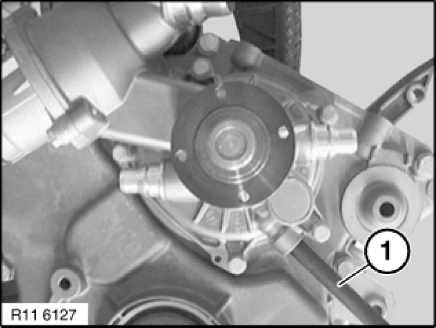 Replace connecting pipe (1) to alternator.