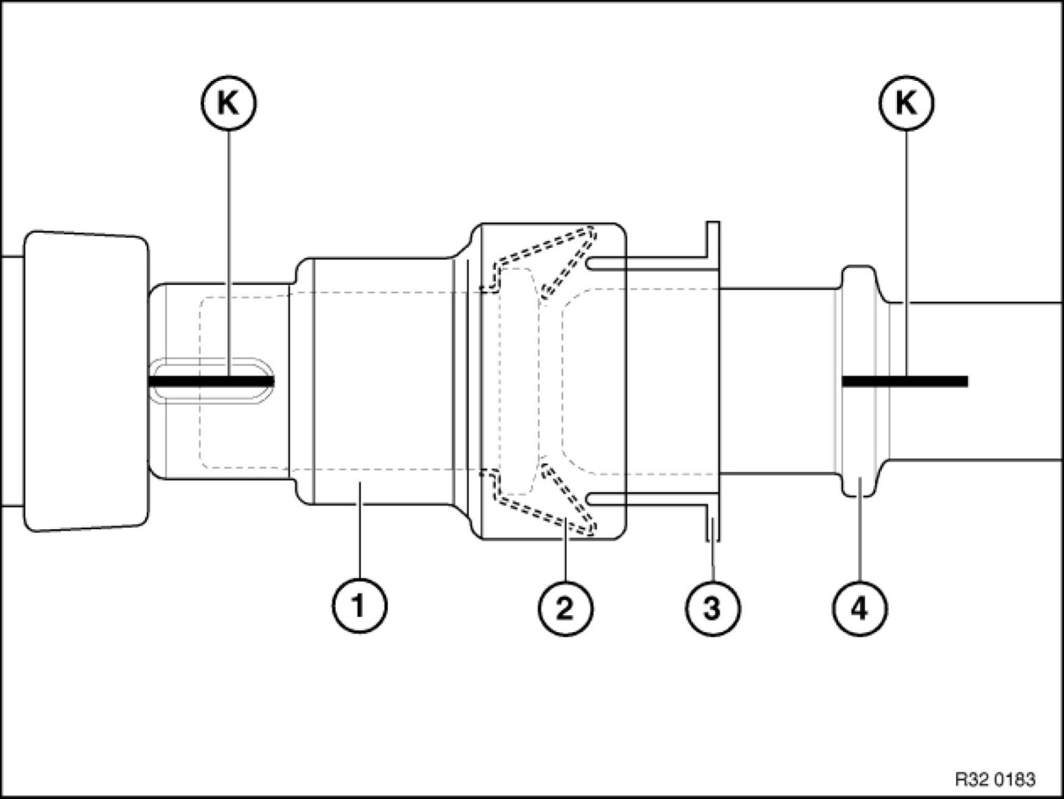 Markings (K) on coupling (1) and pipe (4) must be flush.