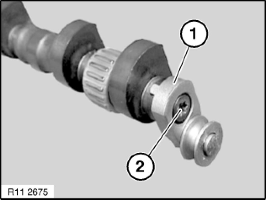 Release screw (1) and remove lever (2) with roller from eccentric shaft.