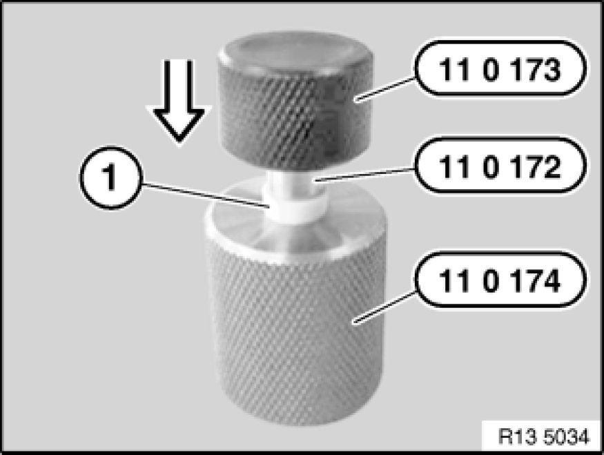 Attach new Teflon ring (1) to special tools 11 0 172 and 11 0 173.