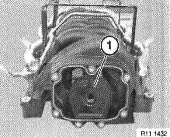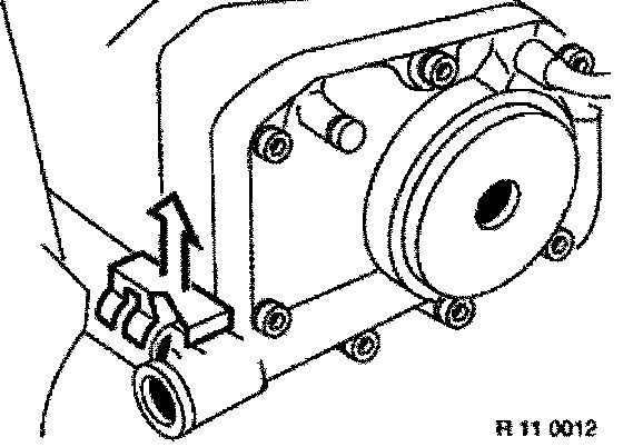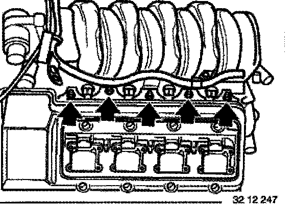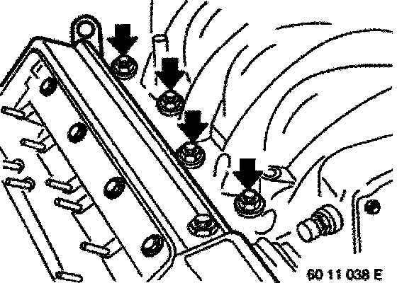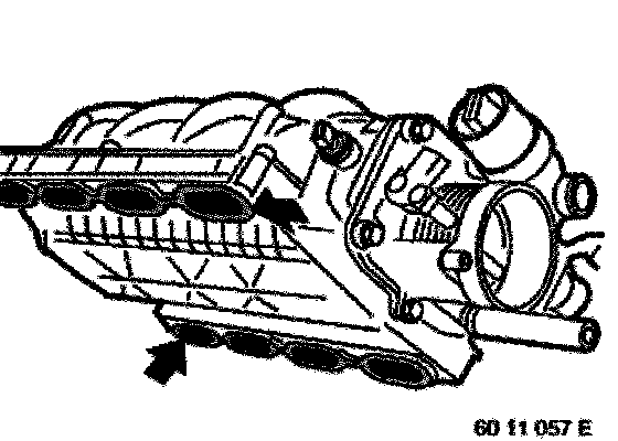 Unfasten nuts (left and right). Remove decoupling elements and lift intake air manifold upwards to remove.